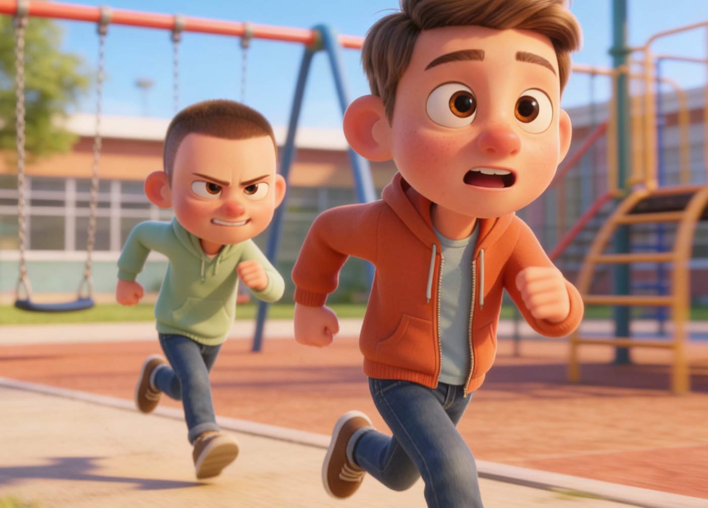 This project involved the creation of a short 3D animated story centered around a consistent child character placed within a lively elementary school environment. Using AI-assisted tools, the goal was to develop cinematic establishing shots and character-driven scenes that felt energetic, wholesome, and visually cohesive.