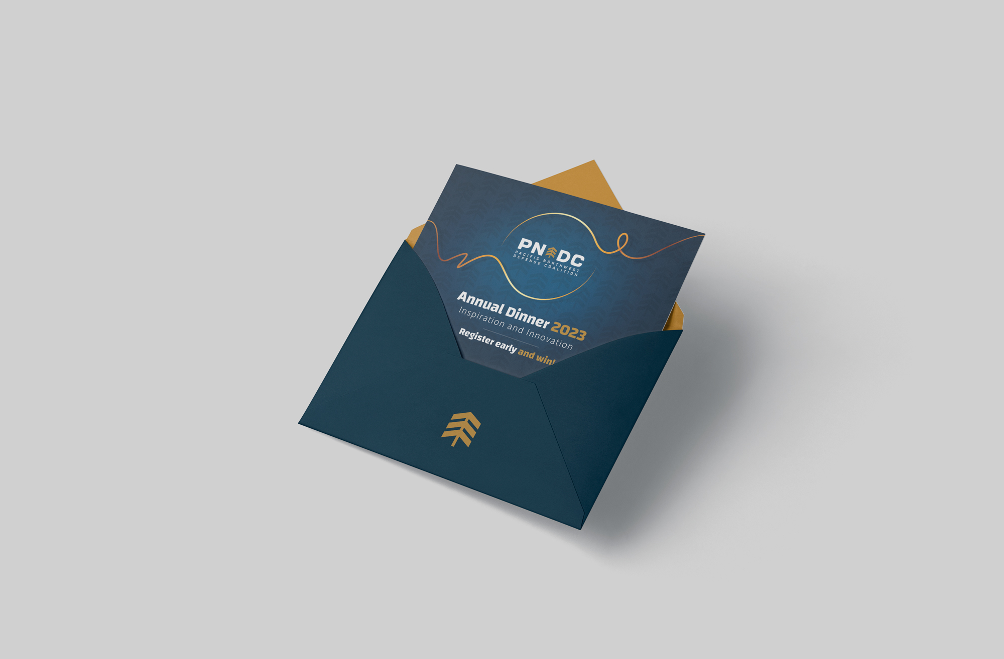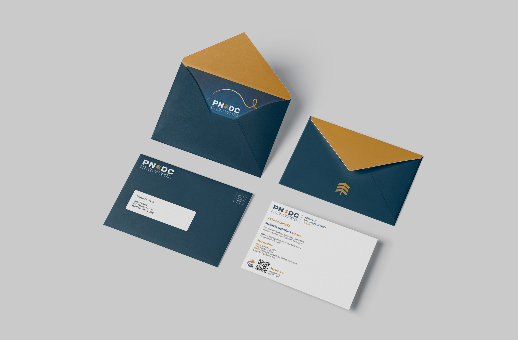 For the Pacific Northwest Defense Coalition, I designed a direct mail campaign promoting The Annual Dinner, the organization’s premier networking and recognition event.