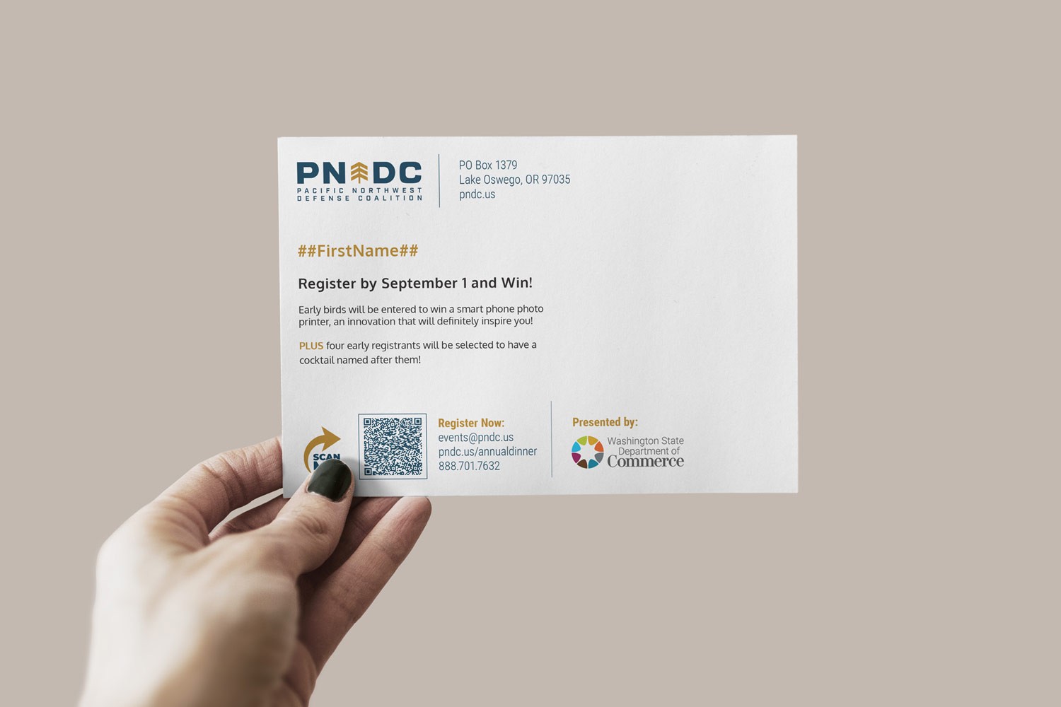 For the Pacific Northwest Defense Coalition, I designed a direct mail campaign promoting The Annual Dinner, the organization’s premier networking and recognition event.The piece was crafted to capture the significance of the evening while maintaining a polished, professional tone aligned with the defense industry audience. Strong visual hierarchy, refined typography, and clear event details ensured key information—date, location, sponsorship opportunities, and registration—was easily accessible and compelling.The final mailer elevated the event’s profile, encouraged attendance, and reinforced the Coalition’s leadership within the regional defense community.
