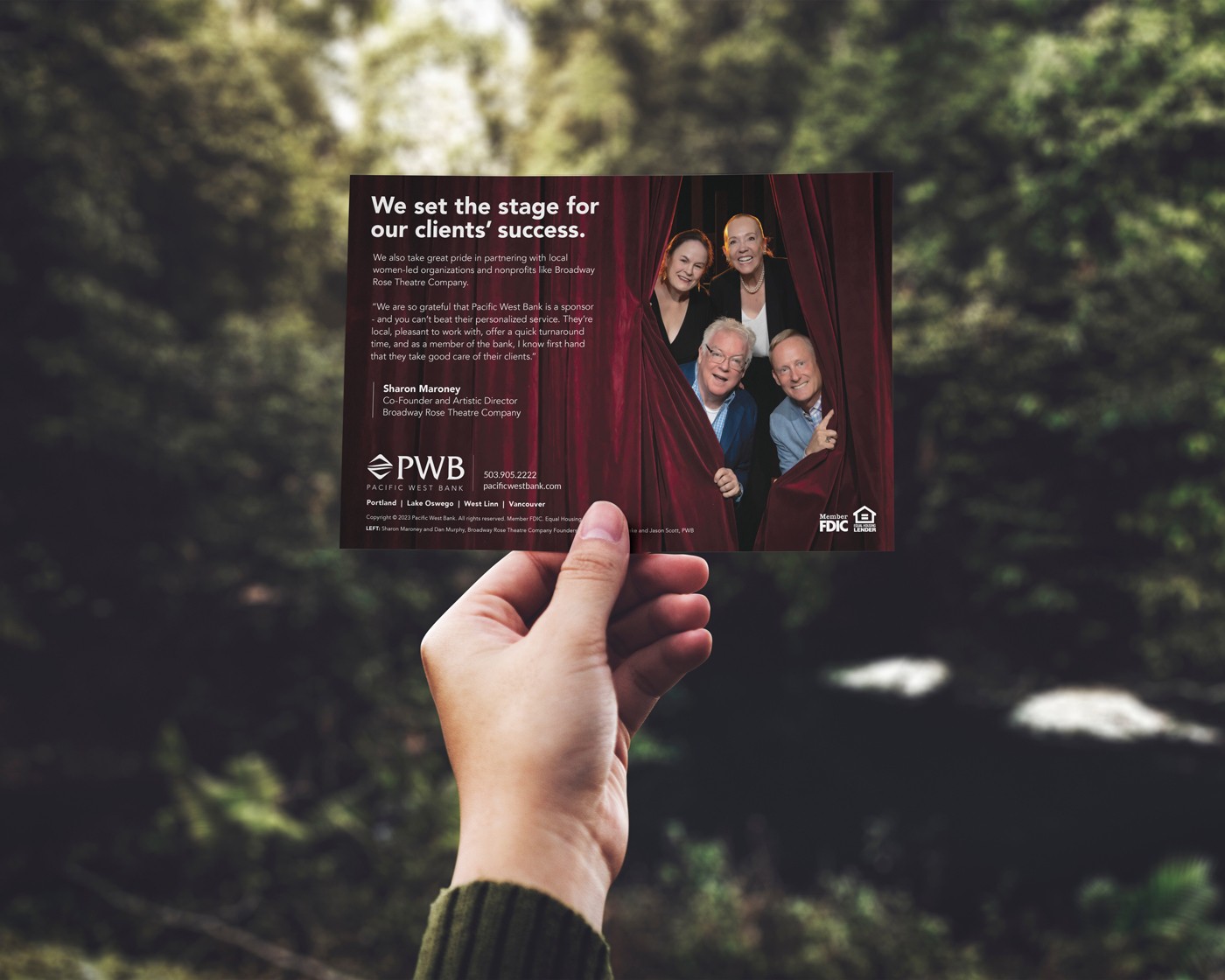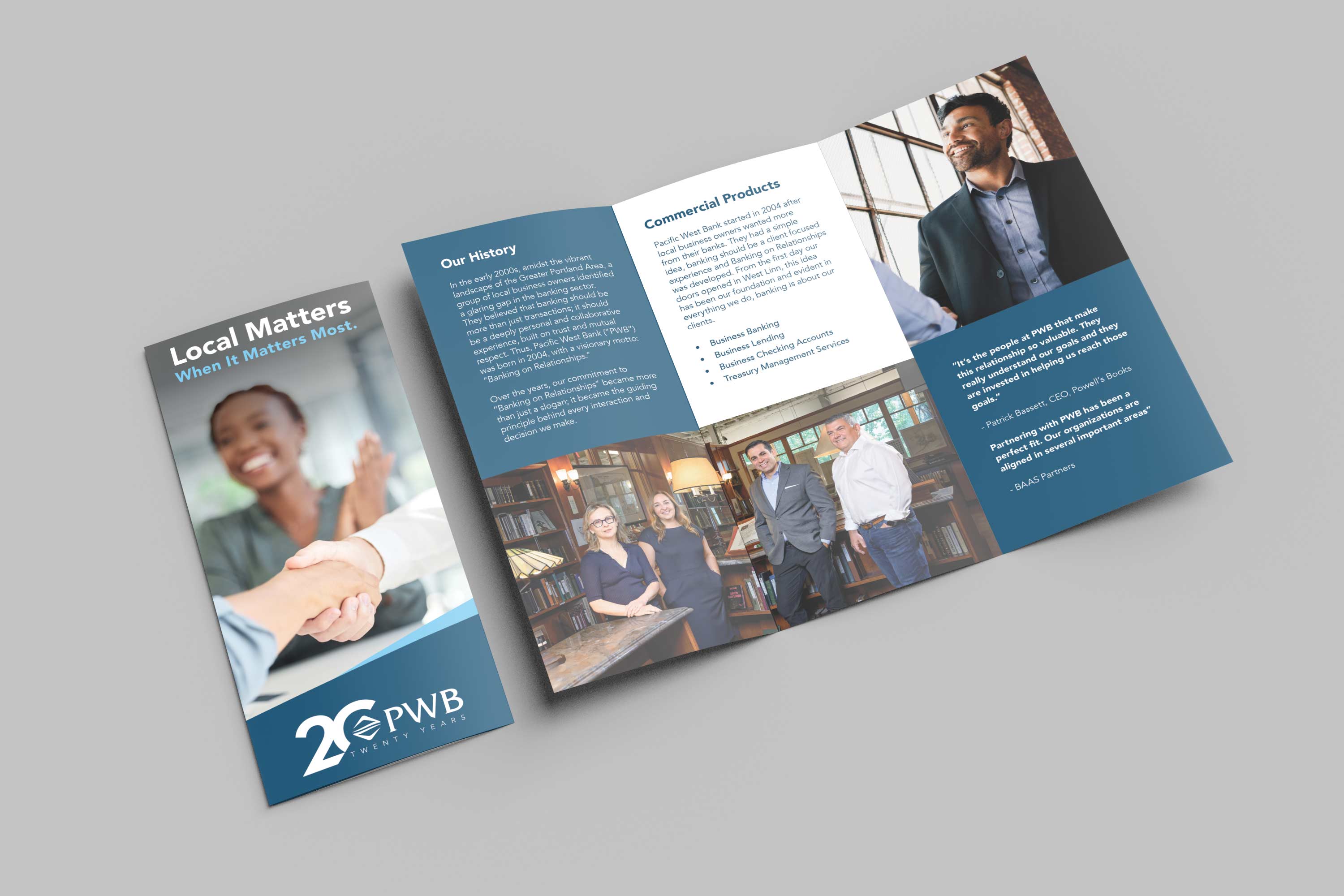 Led a comprehensive brand overhaul for Pacific West Bank, transforming the visual identity from the ground up. Redesigned the logo, refreshed typography, and established a modern, cohesive design system to unify all brand touchpoints.Work spanned marketing materials, print collateral, digital communications, and environmental graphics, ensuring consistency and elevating the bank’s presence across customer-facing and internal channels. The project positioned Pacific West Bank with a contemporary, professional look while maintaining trust and credibility in the financial sector.