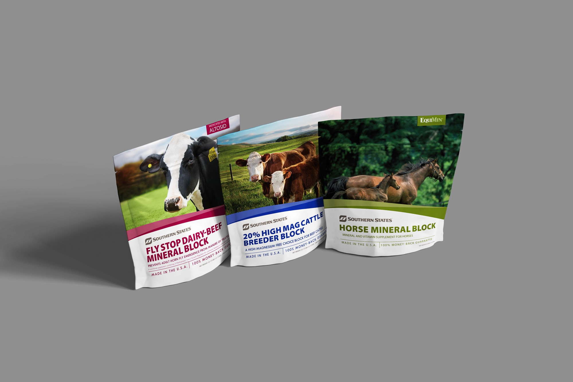 Developed in collaboration with Barber Martin Agency, this packaging system for Southern States reimagines how livestock supplements are presented at retail. Traditionally functional and utilitarian, the category offered an opportunity to elevate both brand perception and shelf presence. The new design introduces a cleaner visual hierarchy, bold color differentiation, and a more refined typographic approach—making products easier to navigate while reinforcing trust and quality. Balancing agricultural authenticity with a more modern aesthetic, the result is a cohesive packaging line that strengthens brand recognition and brings a heightened level of design to an often-overlooked segment.