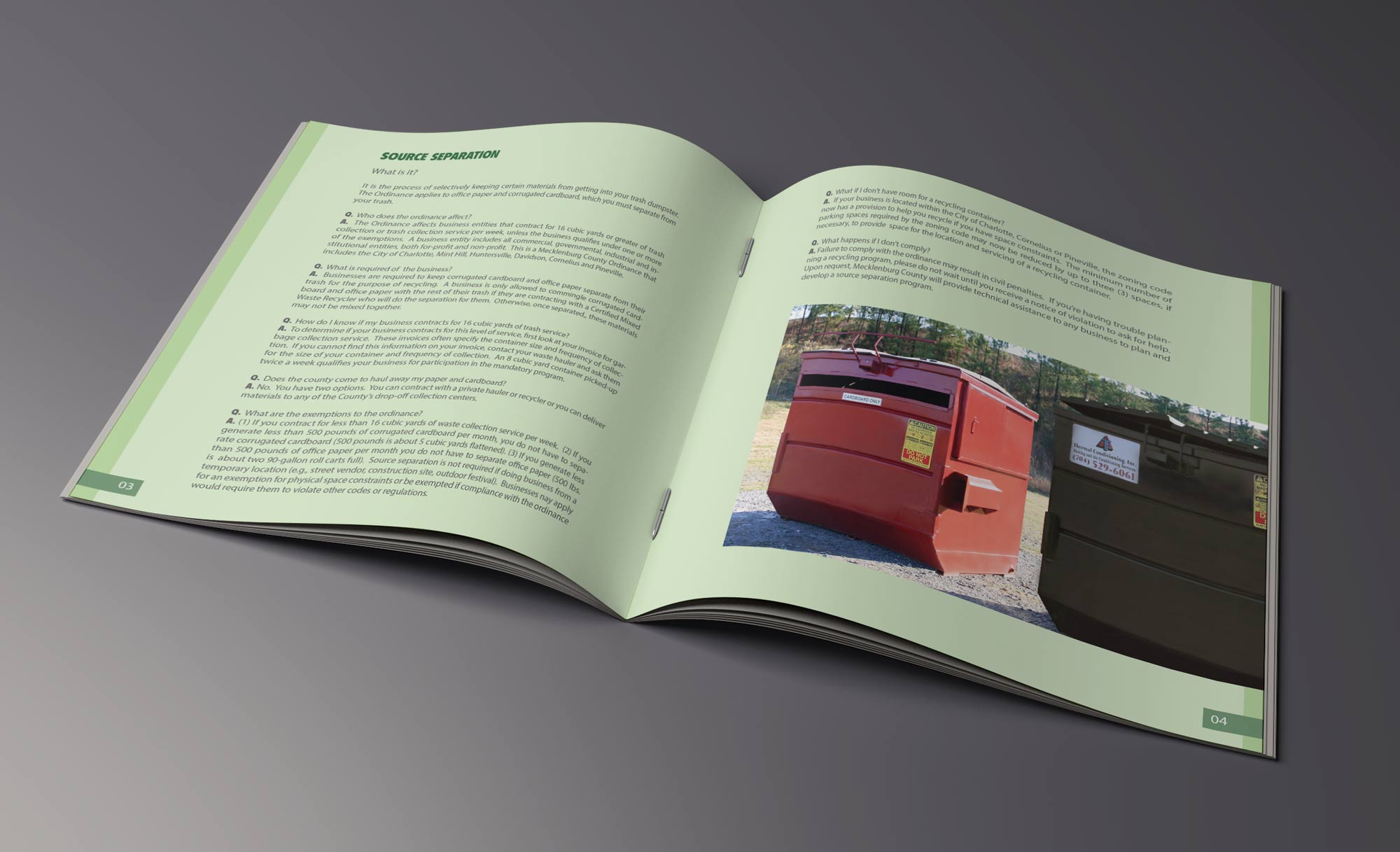 Developed an integrated print campaign to support a community recycling initiative, focused on education and service awareness. Deliverables included a series of print advertisements and a custom saddle-stitched, multi-page booklet distributed to local households.Scope included concept development, art direction, and design across all materials. The booklet served as the primary educational piece, presenting clear, accessible information on proper recycling practices and available services.The final campaign created a cohesive visual system that informed and engaged the community while reinforcing consistent messaging across all touchpoints.